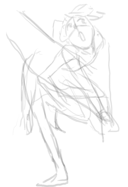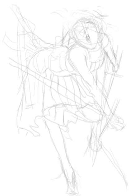 ラフ1は画面にどう納めるか、と大体のポージング。ラフ2で肉付け。ラフ3でそれっぽく。